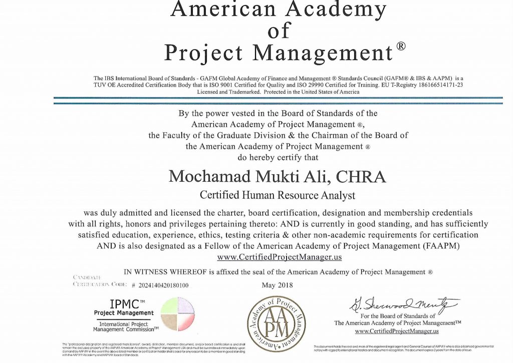 Sertifikat Kompetensi Bidang Sumber Daya ManusiaDr. Mochammad Mukti Ali, S.T., M.M.12 Agustus 2025Sertifikat Internasional Previous Pos Sertifikat Kompetensi Bidang Rantai Pasok