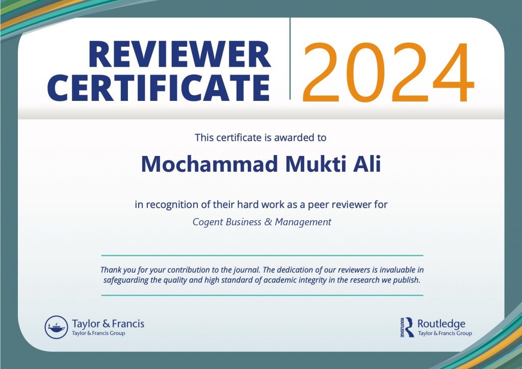Reviewer Journal of Cogent Business & ManagementDr. Mochammad Mukti Ali, S.T., M.M.14 Agustus 2025Reviewer Previous Pos Reviewer Journal of Infrastructure, Policy, and Development (JIPD) Next Pos Reviewer Journal of Infrastructure, Policy, and Development (JIPD)