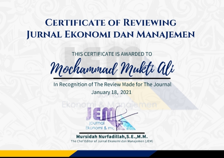 Reviewer Jurnal Ekonomi dan Manajemen (JEM)Dr. Mochammad Mukti Ali, S.T., M.M.15 Agustus 2025Reviewer Previous Pos Reviewer Journal of Advances in Decision Sciences (ADS) Next Pos Reviewer Jurnal Ekonomi dan Manajemen (JEM)