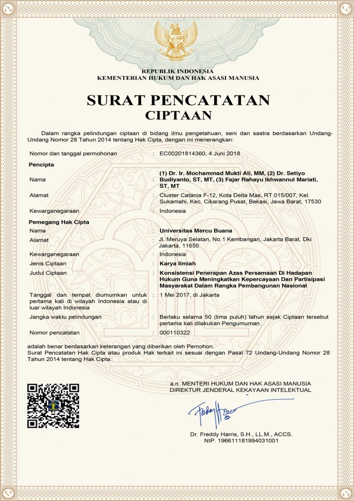 Karya Ilmiah : Konsistensi Penerapan Azas Persamaan di Hadapan Hukum Guna Meningkatkan Kepercayaan dan Partisipasi Masyarakat Dalam Rangka Pembangunan NasionalDr. Mochammad Mukti Ali, S.T., M.M.18 Agustus 2025Hak Cipta Previous Pos Karya Ilmiah: Pengelolaan Sumber Daya Kelautan Yang Berdaulat dan Berkelanjutan Guna Pembangunan Keunggulan Kompetitif Perekonomian Yang Berkeadilan Dalam Rangka Ketahanan Nasional Next Pos Buku: KoPengGam - Strategi Memenangkan Persaingan Bisnis #1