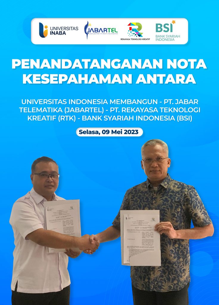 Penandatanganan Kerja Sama dengan PT. Rekayasa Teknologi Kreatif (RTK)Dr. Mochammad Mukti Ali, S.T., M.M.20 Agustus 2025Kegiatan Previous Pos Penandatanganan Kerjasama dengan PT. Jabar Telematika (JabarTel) Next Pos Penandatanganan Kerja Sama dengan Bank Syariah Indonesia (BSI)