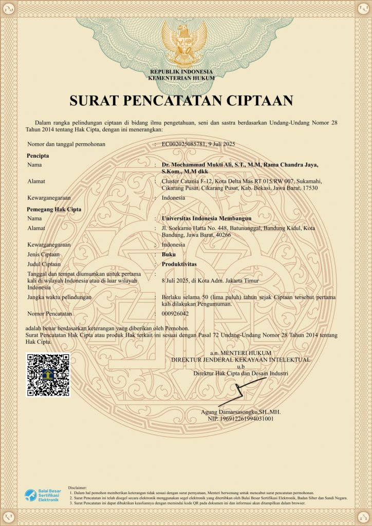 Buku: ProduktivitasDr. Mochammad Mukti Ali, S.T., M.M.25 Agustus 2025Hak Cipta Previous Pos Buku: Manajemen Pemasaran Jasa Berbasis Jasa Penerbangan Next Pos Bunga Rampai: Knowing Your Customer to Increase Profitability