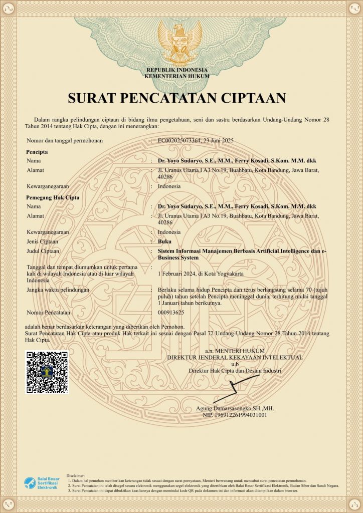 Buku: Sistem Informasi Manajemen Berbasis AI dan e-Business SystemDr. Mochammad Mukti Ali, S.T., M.M.25 Agustus 2025Hak Cipta Previous Pos Lagu: Hymne Universitas Indonesia Membangun (INABA) Next Pos Buku: Belajar Marketing untuk Umum